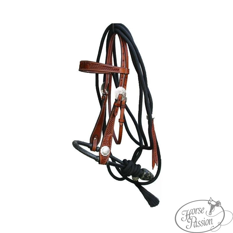 Bosal komplet Westernwelt ogłowie z concho, bosal z surowej skóry, mecate z włosia
