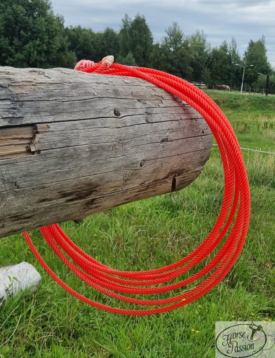 Lasso Classic Equine The Heat 30' — 4-splotowa lina z rdzeniem CoreTech, zaprojektowana pod szybkość i sprężystość. Średnica 3/8", długość 30' (ok. 9 m). Dwa warianty sztywności: XXS (Extra Extra Soft) i XS (Extra Soft). Charakterystyczny „snap" — błyskawiczne zaciśnięcie pętli po rzucie. Koralowy kolor. Do team ropingu, heelingu i pracy z bydłem.