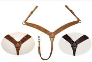 Napierśnik od marki EE TACK to solidna, rymarska propozycja, łącząca funkcjonalność z bardzo eleganckim wykończeniem. Kasztanowy kolor (chestnut) skóry bardzo dobrze komponuje się z popularnymi na rynku siodłami w ciepłych odcieniach brązu. Bogate, tłoczone wzory roślinne (floral) na ramionach napierśnika nadają mu autentycznego, kowbojskiego charakteru. Jest to sprzęt, który posłuży przez lata – skóra, pod warunkiem regularnej pielęgnacji, zachowa swoją elastyczność i świetny wygląd.