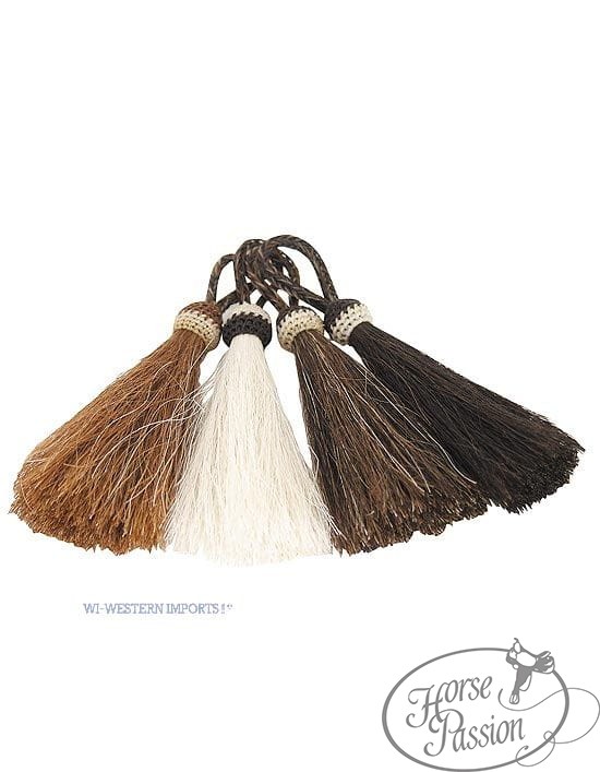 Brelok / zawieszka z końskiego włosia to dekoracyjny frędzel o westernowym charakterze, odpowiedni jako dodatek do kluczy, torby lub elementu wyposażenia.