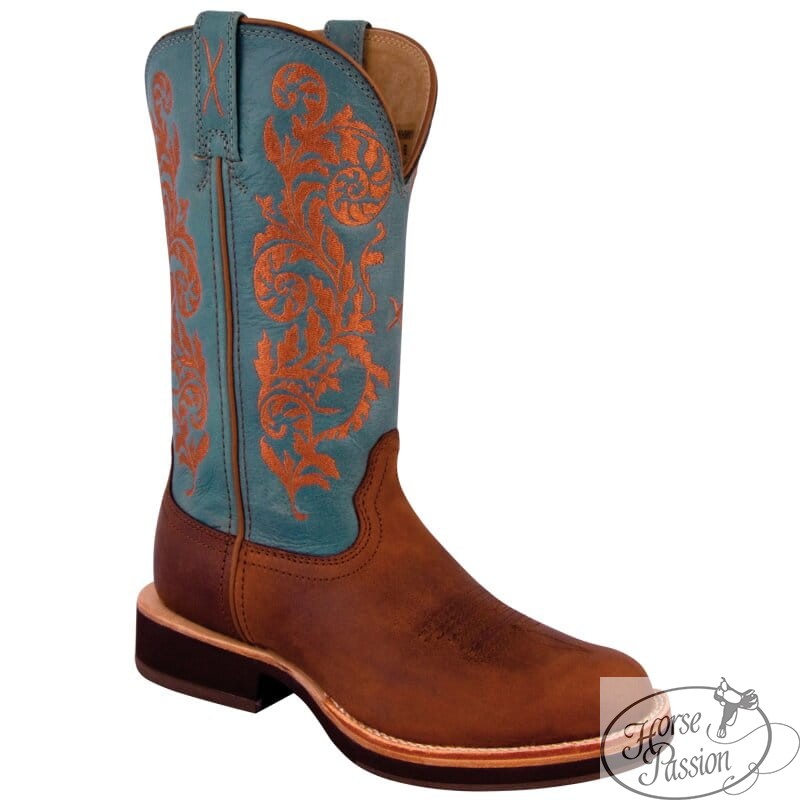 Twisted X Horseman Sky Blue to but który łączy klasyczny western z kobiecym charakterem — turkusowa cholewka z rozbudowanym haftem kwiatowym robi wrażenie zarówno na zawodach jak i przy codziennym noszeniu. Twisted X Boot Company z Teksasu projektuje buty dla jeźdźców i pracowników ranchów — ich flagowa zasada to komfort przez cały dzień, niezależnie od tego co robisz. Horseman to ich klasyczny model western: ręcznie szyty, weltowany i zbudowany tak by służył latami.