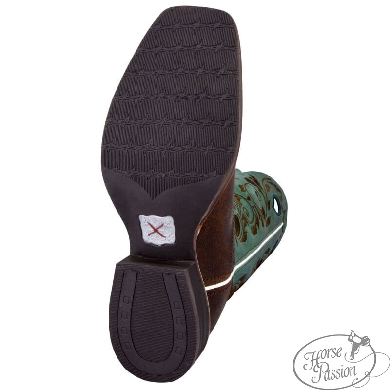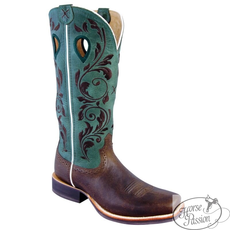 Buty kowbojskie damskie Twisted X Ruff Stock cholewka 13" turkus haft winorośl kwadratowy nosek