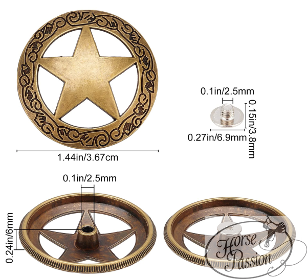Concho gwiazdka antique brass 37 mm gwiazda texaska z grawerem śrubka w zestawie