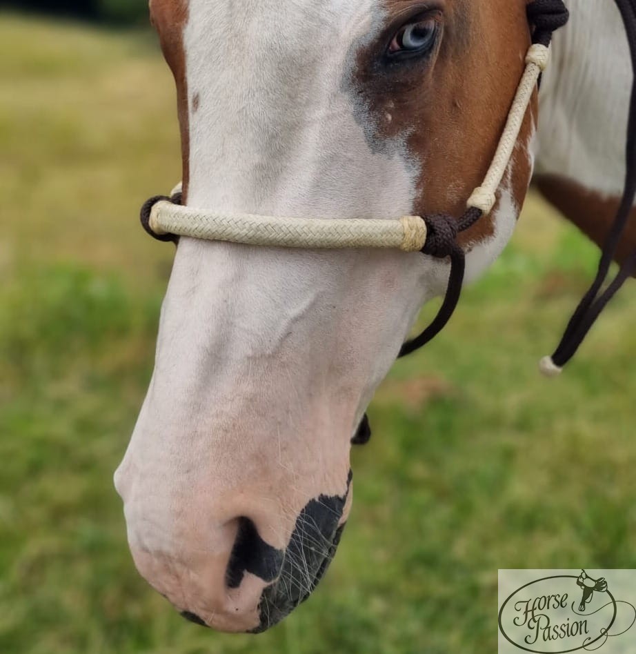 Czym różni się ten kantar od kantara sznurkowego z krótkim paskiem rawhide?
