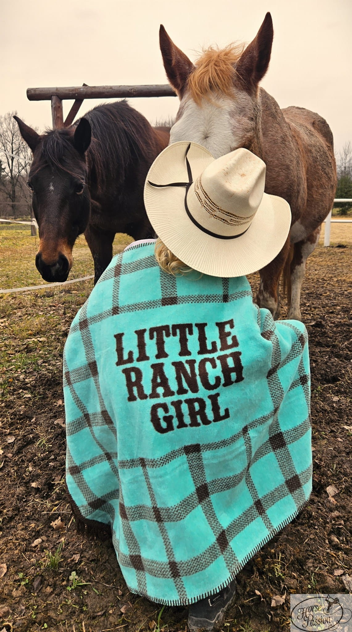 Koc bawełniany Little Ranch Girl turkusowy 70 × 100 cm