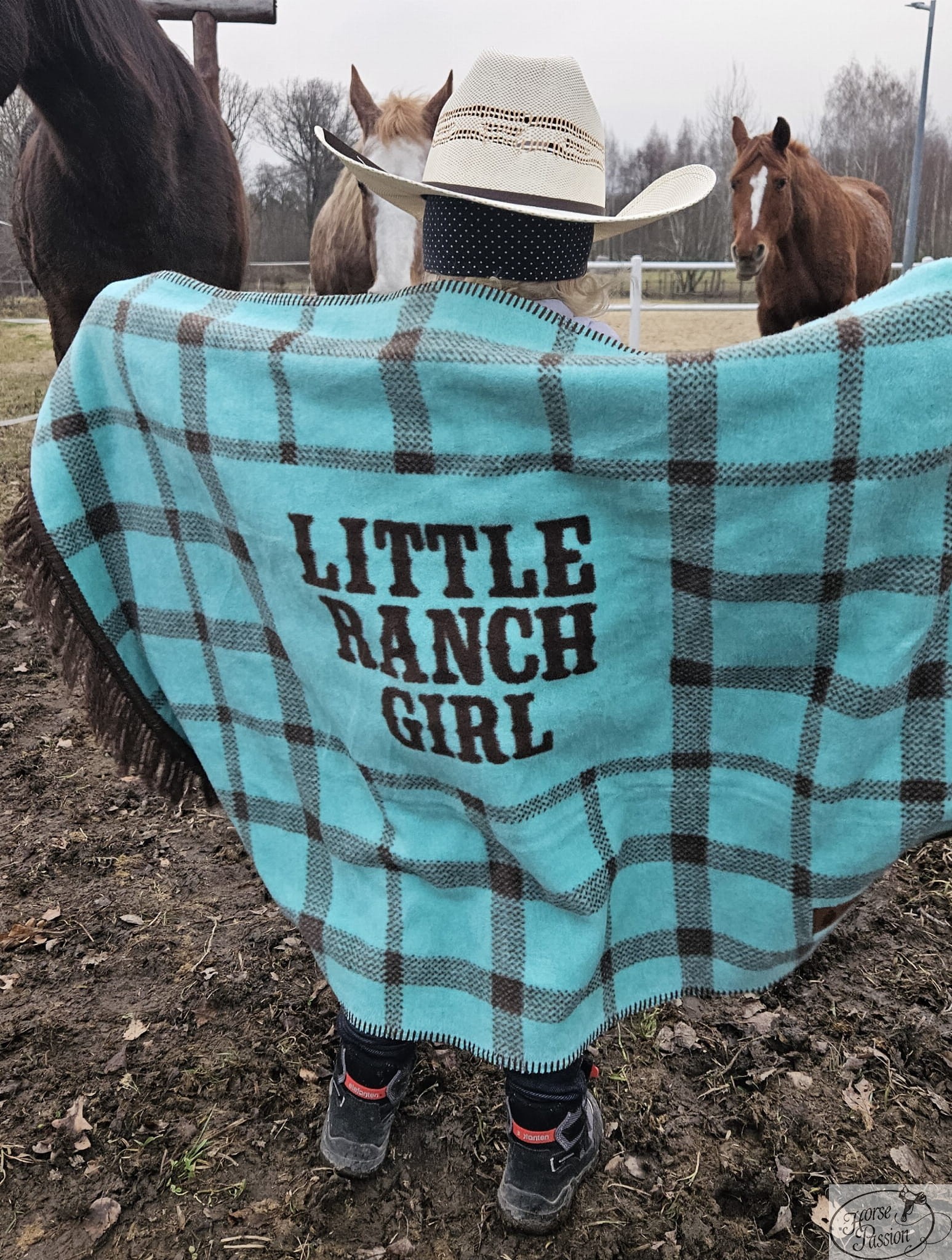 Model Little Ranch Girl został zaprojektowany jako koc dla dzieci, odpowiedni do użytku w domu, w podróży oraz podczas wyjazdów związanych z jeździectwem. Kompaktowy rozmiar ułatwia zabranie koca do samochodu, wózka lub torby.