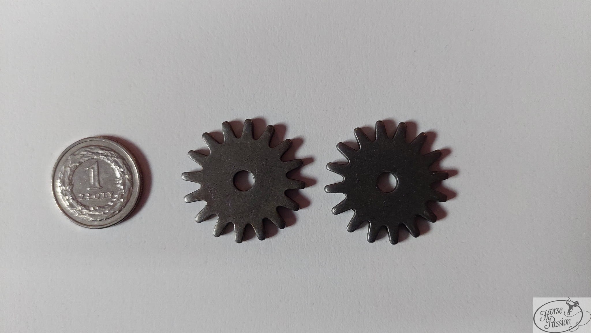 Kółka rowele do ostróg western 16 punktowe szpiczaste ciemna stal komplet z montażem