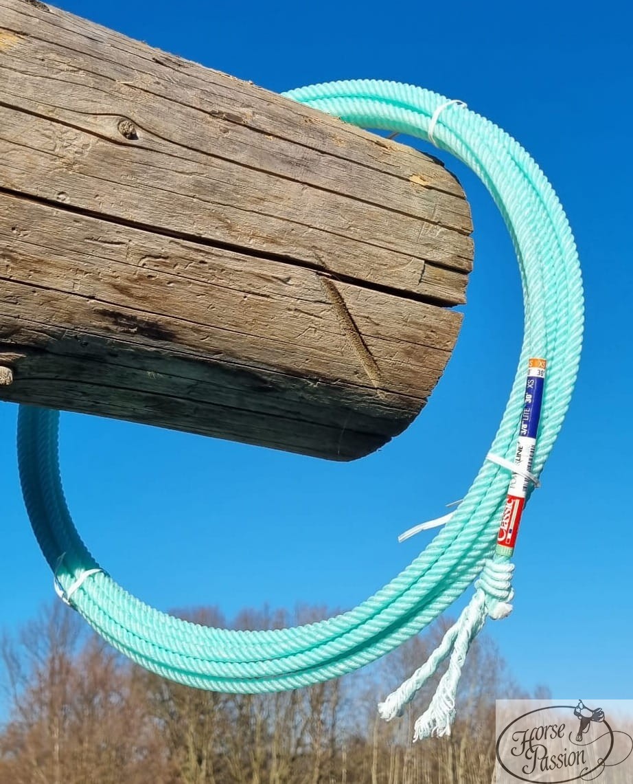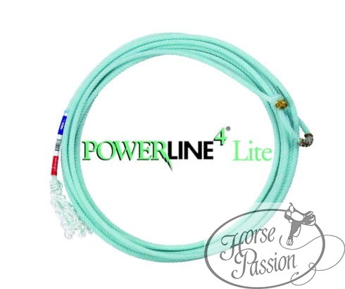 Lasso Classic Equine Powerline4 Lite 30' — 4-splotowa konstrukcja z rdzeniem nylonowym CoreTech. Średnica 3/8", długość 30' (ok. 9 m). Trzy warianty sztywności do wyboru: XXS (Extra Extra Soft), XS (Extra Soft) i S (Soft). Gładki ślizg przez hondę, stabilna otwarta pętla, odporność na wilgoć i temperaturę. Miętowy kolor. Jeden z najpopularniejszych modeli do team ropingu na świecie.