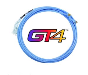 Lasso Rattler GT4 30' S — 4-splotowa lina z 100% nylonu z rdzeniem CoreTech. Nylon jest odporniejszy na mróz niż poliester — lina nie sztywnieje i nie odkształca się w niskich temperaturach. Lay S (Soft) — sztywniejszy niż XS i XXS, daje stabilną, otwartą pętlę i pewne prowadzenie. Head rope do team ropingu (heading). Średnica 3/8", długość 30' (ok. 9 m). Niebieski kolor.