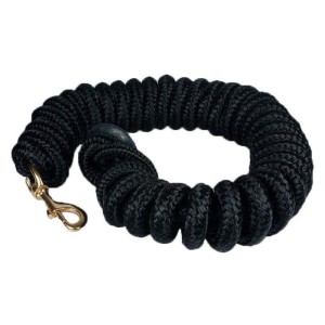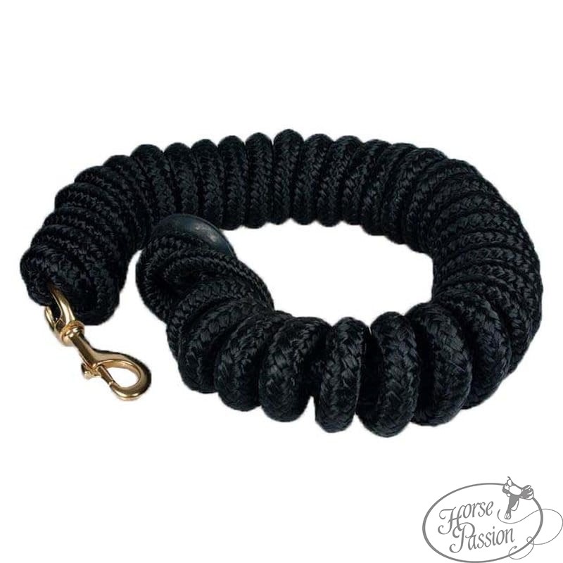 Lonża nylonowa Equi 7,6 m — gruba, miękka lina nylonowa do lonżowania i pracy z ziemi z gumowym stopperem zabezpieczającym przed wysunięciem z dłoni. Mosiężny karabińczyk odporny na korozję. Kolor czarny.