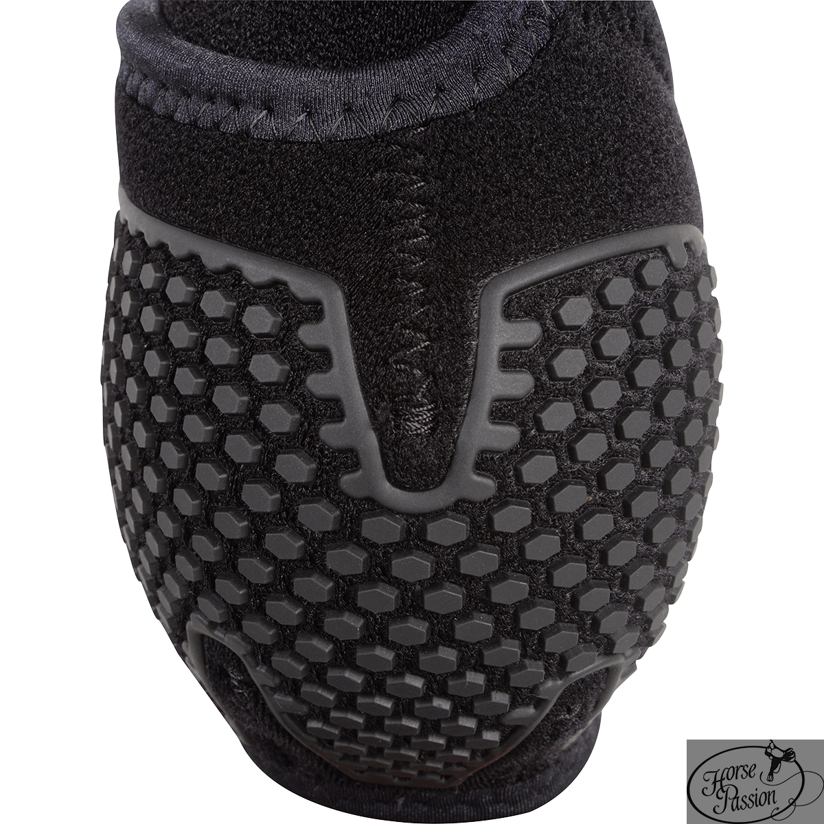 Oddychający neopren sprzyja komfortowi użytkowania nawet przy intensywnym treningu, ograniczając przegrzewanie nogi. Cztery rzepy umożliwiają precyzyjne dopasowanie ochraniacza i stabilne utrzymanie go na nodze konia podczas jazdy.