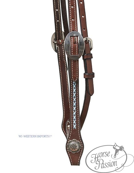 Ogłowie western Horseman's Tack prosty naczółek niebieski haft ciemna espresso COB Western Imports