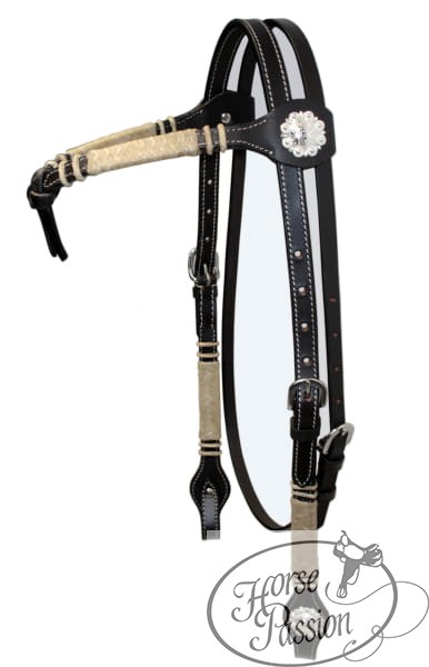 Ogłowie western futurity naczółek surowa skóra rawhide z kryształową concho ciemna skóra Equi
