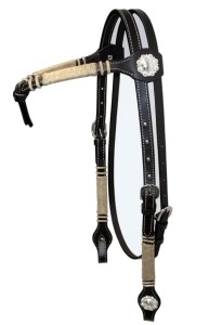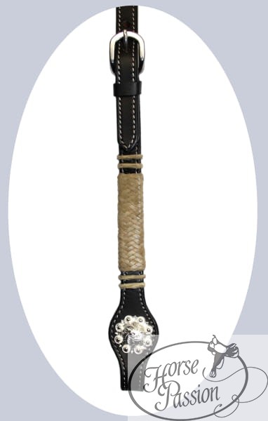 Ogłowie z prostym naczółkiem ze splecionej surowej skóry (rawhide) i ozdobnymi okuciami znajdziesz również w kategorii Ogłowia z naczółkiem. Akcesoria do zawodów western — napierśniki, wodze i dodatki — w kategorii Akcesoria na zawody western.