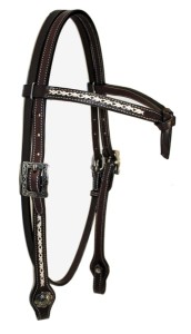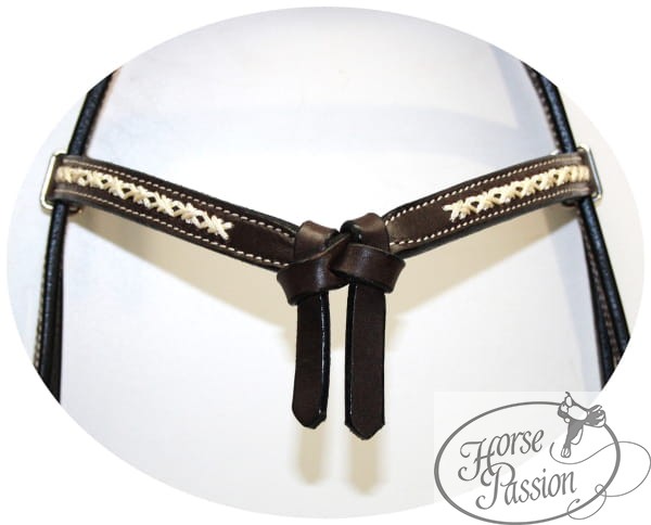 Ogłowie western futurity z białym haftem plecionym ciemna skóra ozdobne klamry rozmiar COB