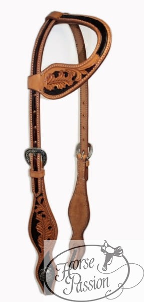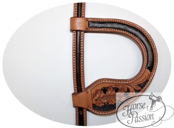 Ogłowie western jedno ucho Equi SHOW oak leaf tooling dwukolorowe rozmiar cob