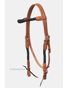 Ogłowie western skóra honey z czarną plecionką nylonową naczółek i policzki COB Western Imports