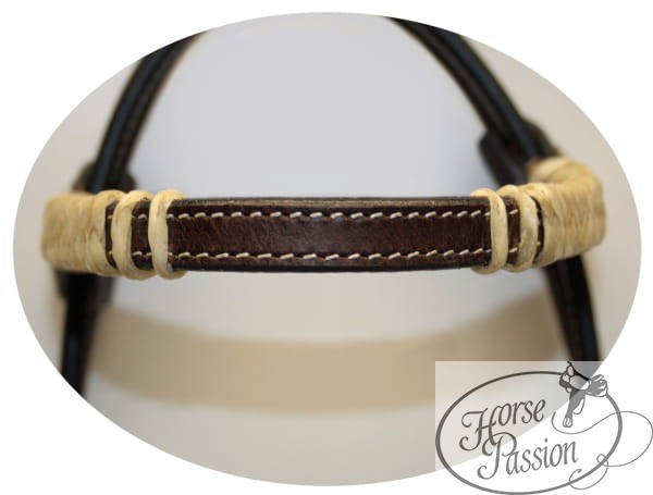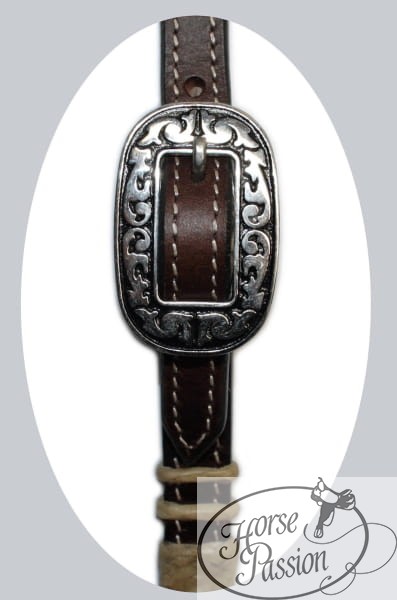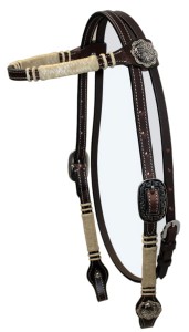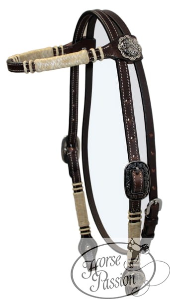 Ogłowie western z naczółkiem surowa skóra rawhide ciemna skóra ozdobne okucia