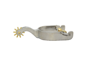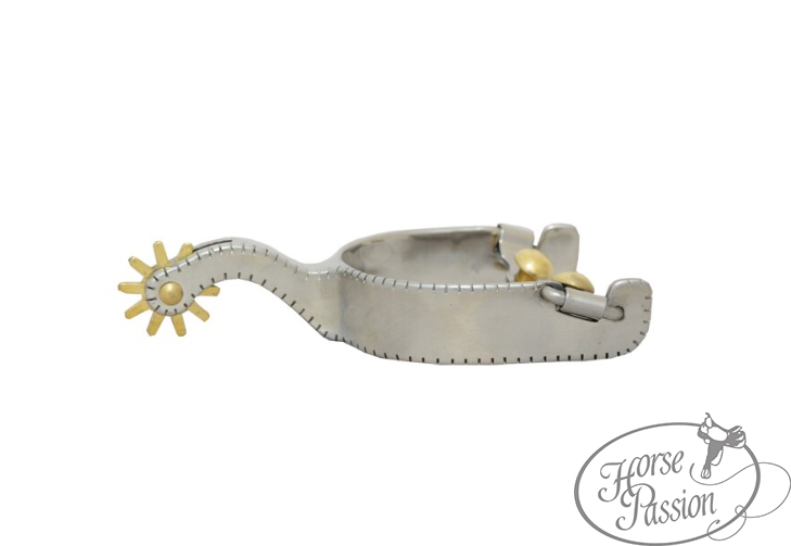 Ostrogi western klasyczne stal satin, rowel mosiądz, ząbkowana krawędź