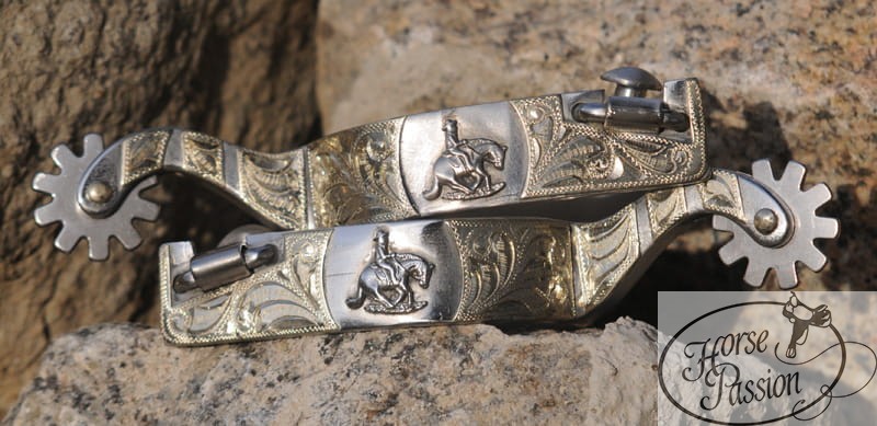 Ostrogi western sliding stop Equi stal nierdzewna grawer floral medalion z koniem