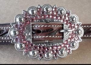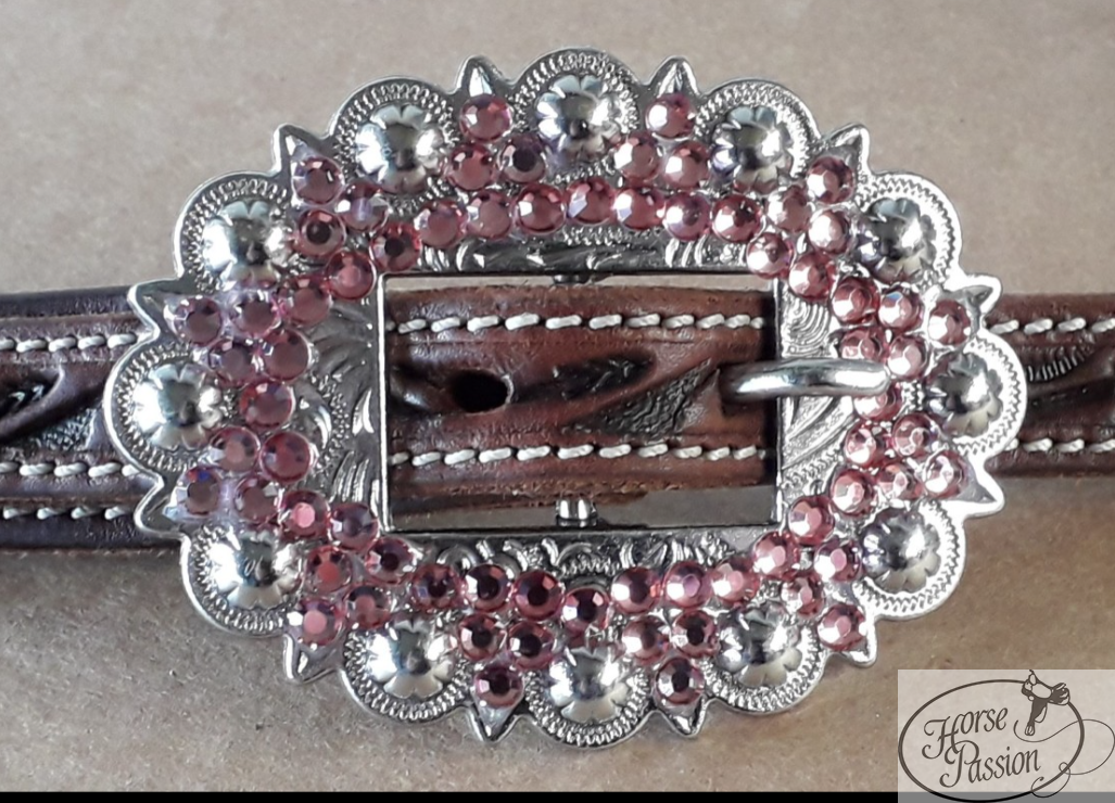 Wybierz ozdobną sprzączkę z różowymi cyrkoniami i połącz funkcjonalność z wyjątkowym, westernowym stylem Twojego sprzętu jeździeckiego.