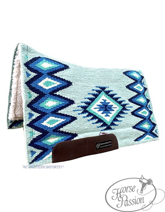 Pad western Sol de Oaxaca Western Imports z wkładką CSF (Comfort Saddle Fit) — trójwarstwowa konstrukcja: spód z naturalnej wełny owczej, środkowa wkładka CSF dopasowująca się do grzbietu konia, wierzch z wełnianego blanketu show (nowozelandzkiego). Długość ok. 83 cm. Dostępny w kolorach kremowym, czarnym i miętowym — na zamówienie, wysyłka 14 dni.