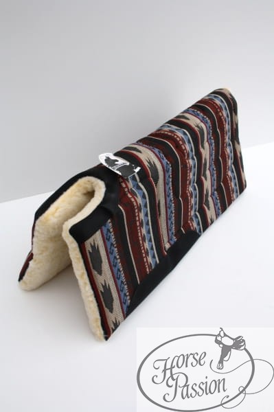 Pad western korekcyjny podwójny Mustang — pad z dodatkowym pogrubieniem w okolicy łopatek (ok. 5 cm), które podnosi przód siodła i koryguje jego ułożenie na grzbiecie konia. Rozwiązanie dla jeźdźców, którzy potrzebują lepszego dopasowania siodła bez wymiany na nowe. Wzór South West. Wymiary ok. 82×82 cm. Warianty kolorystyczne do wyboru.