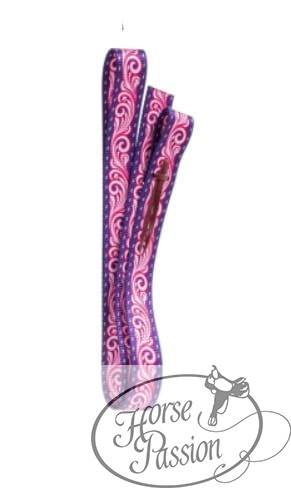 Pasek do popręgu (tie strap) nylonowy Equi — wykonany z nylonu z dekoracyjnym wzorem floral scroll w kolorach fioletowym i różowym na całej długości. Do montażu po lewej stronie siodła westernowego. Funkcjonalny zamiennik fabrycznego paska z charakterem, który wyróżni zestaw w siodle i na zawodach.