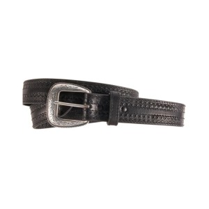 Pasek western skórzany Stars & Stripes Plain tłoczenie koszyczkowe klamra srebrna z grawerem czarny