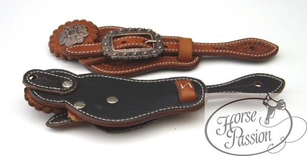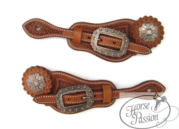 Paski do ostróg western Equi basket weave scalloped ozdobna klamra concho kwiatowe