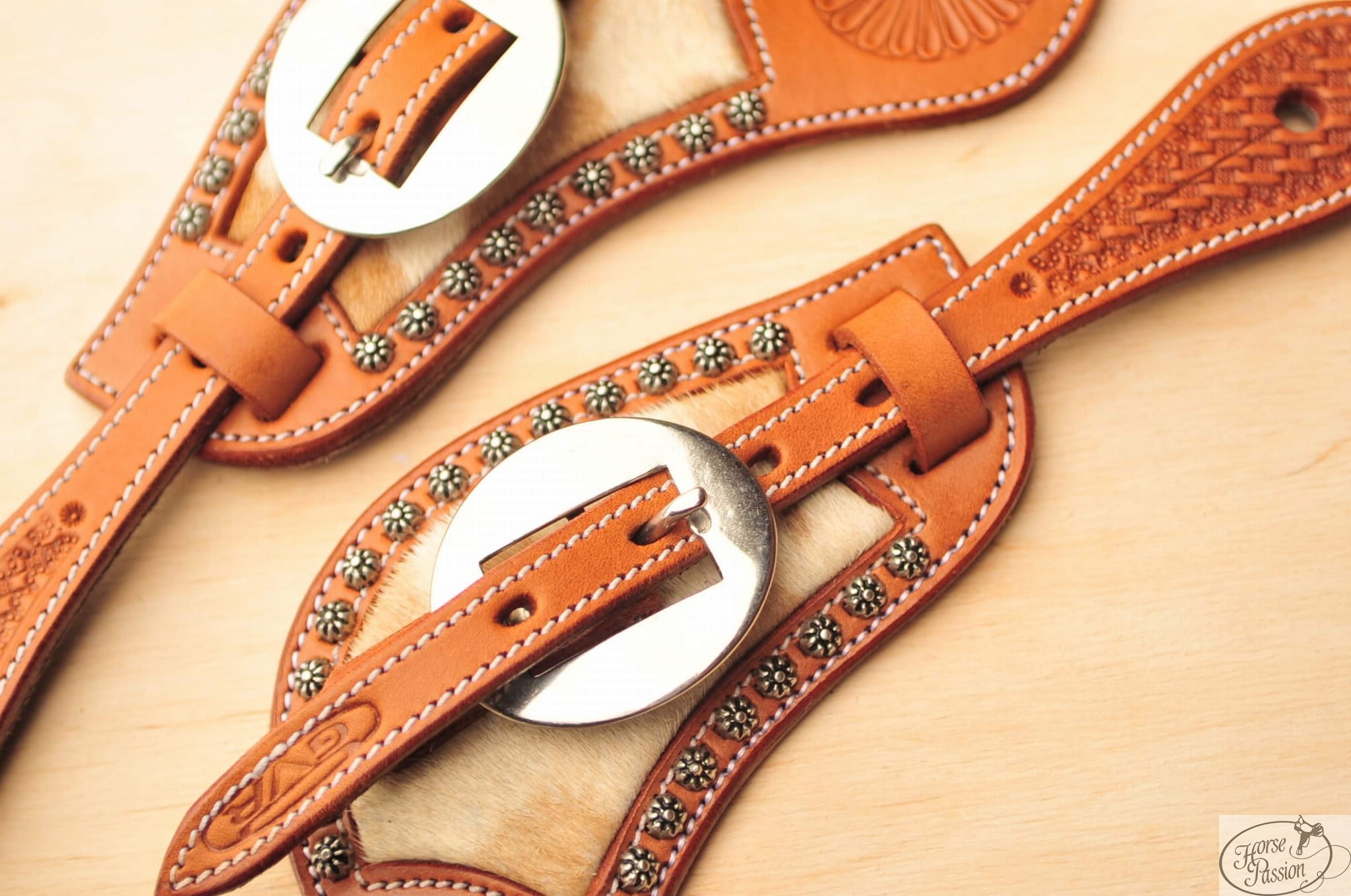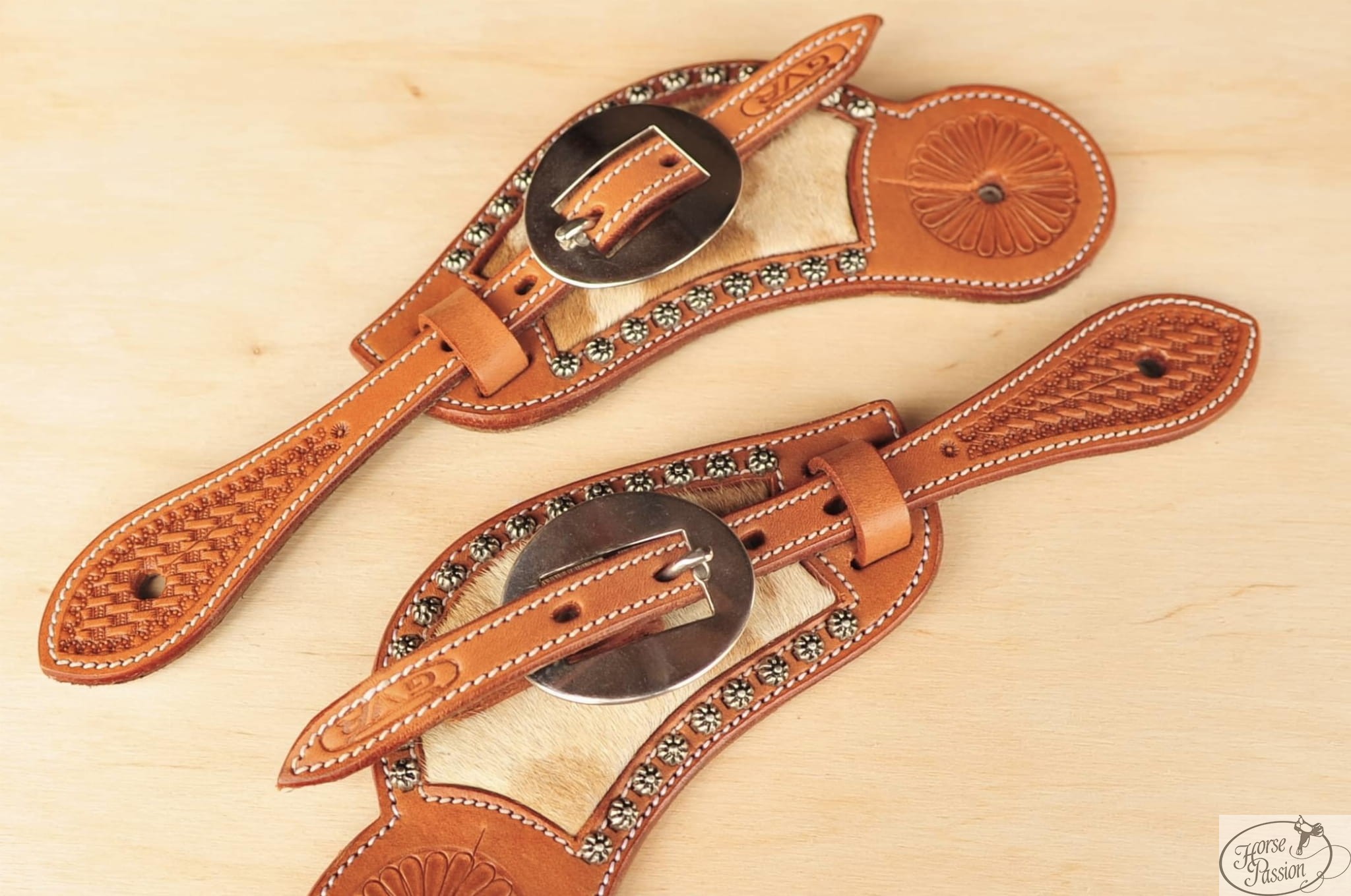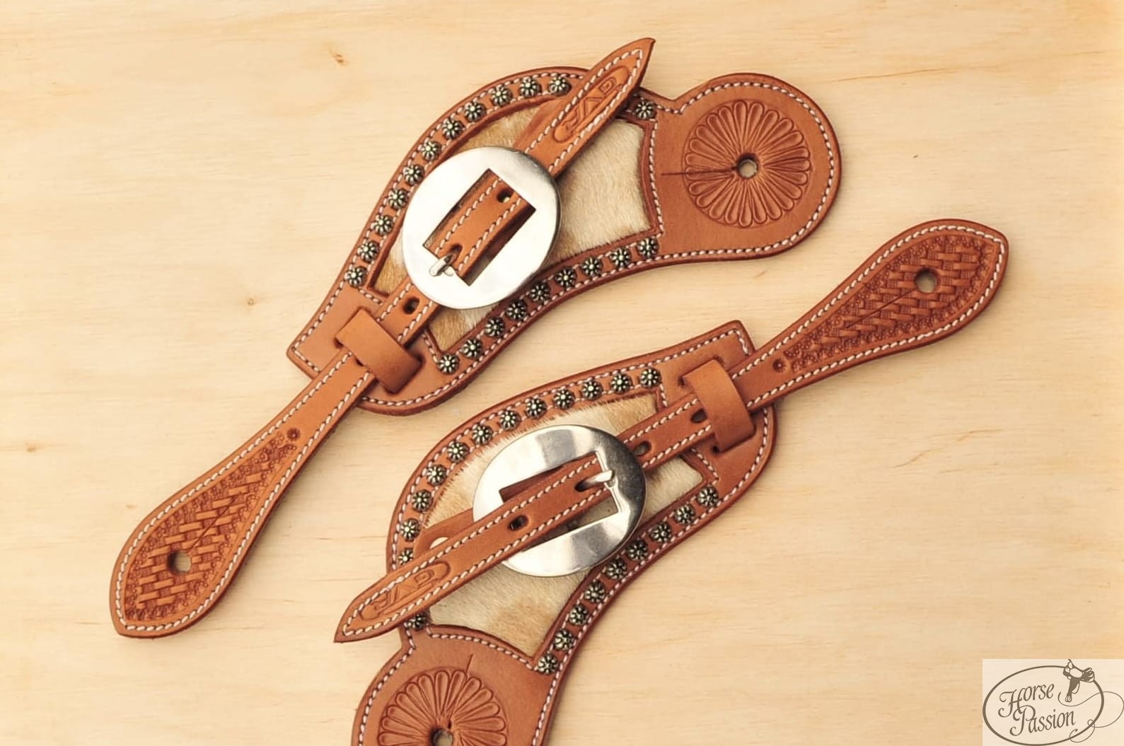 Paski do ostróg western GVR sierść bydlęca, flower studs, basket, roper buckle
