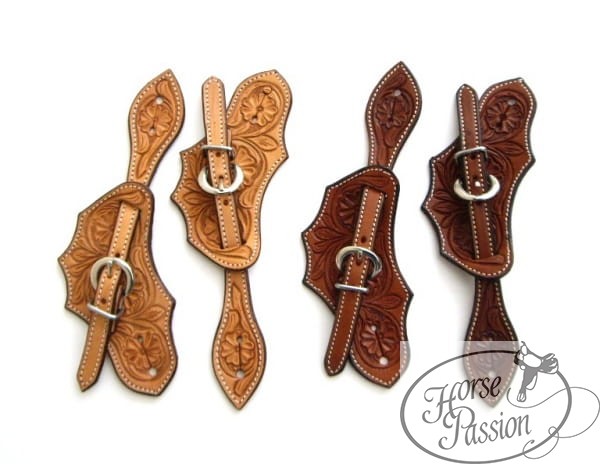 Paski do ostróg western flower dekoracyjnie wycięte, skóra naturalna, 2 kolory