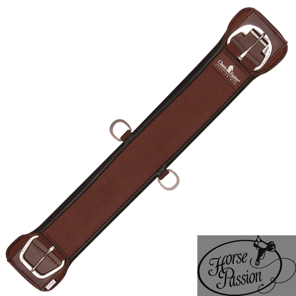 Sześciowarstwowa konstrukcja wewnętrzna eliminuje skręcanie i deformację przy wielokrotnym zapinaniu i zdejmowaniu — popręg zachowuje kształt i nie skręca się po bocznej stronie siodła. Skórzane końcówki przy klamrach (charakterystyczny detail Classic Equine) zwiększają trwałość w miejscach największego zużycia. Klamra rolkowa po lewej stronie ułatwia zapinanie. Classic Equine zaleca parowanie wyłącznie z latigo ze skóry — nylonowy tie strap ogranicza naturalne rozszerzanie się klatki piersiowej konia przy oddechu.