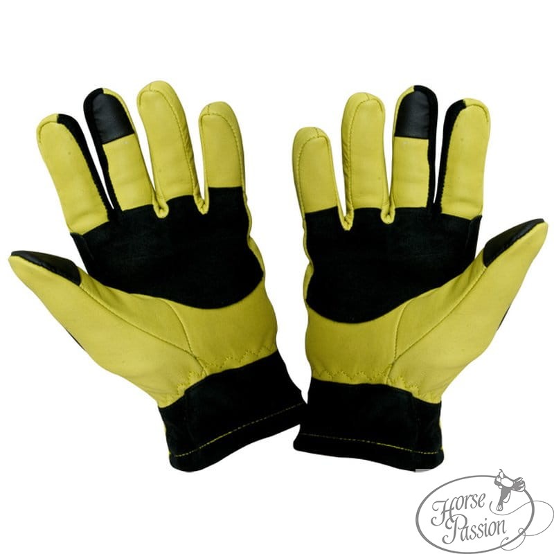 Damskie rękawiczki zimowe MQ Line to niezawodna ochrona dłoni w mroźne i deszczowe dni. Wykonane z wysokiej jakości skóry naturalnej w charakterystycznym, żółto-czarnym kolorze. Podszyte ciepłym polarem flis, skutecznie izolują od zimna. Zaimpregnowana powierzchnia chroni przed wilgocią, a wzmocniona wewnętrzna część zapewnia pewny chwyt wodzy. Wyposażone w technologię Touch Screen do wygodnej obsługi smartfonów. Niezbędne do jazdy, pracy z koniem z ziemi i obowiązków stajennych podczas sezonu jesienno-zimowego.
