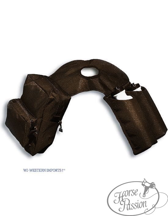 Sakwa na horn Western Imports z uchwytami na dwa bidony to funkcjonalne akcesorium do siodeł westernowych, przeznaczone do jazdy trailowej i rekreacyjnej. Montowana bezpośrednio na rogu siodła, umożliwia wygodne przechowywanie drobnych przedmiotów oraz napojów podczas jazdy.