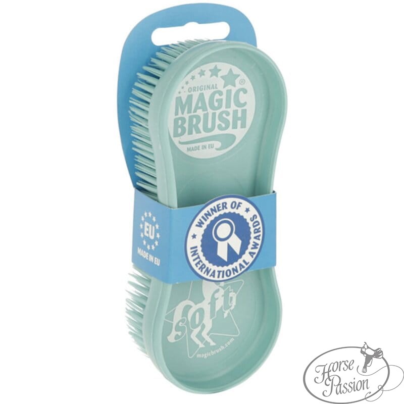 Szczotka typu Magic Brush to wielofunkcyjna szczotka do czyszczenia konia, przeznaczona do usuwania błota, kurzu i sierści z ciała, nóg oraz kopyt. Elastyczna konstrukcja pozwala na użycie zarówno na sucho, jak i na mokro.