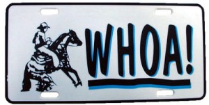 Tablica „WHOA” to dekoracyjny szyld w stylistyce western, nawiązujący do reiningu i pracy z koniem.