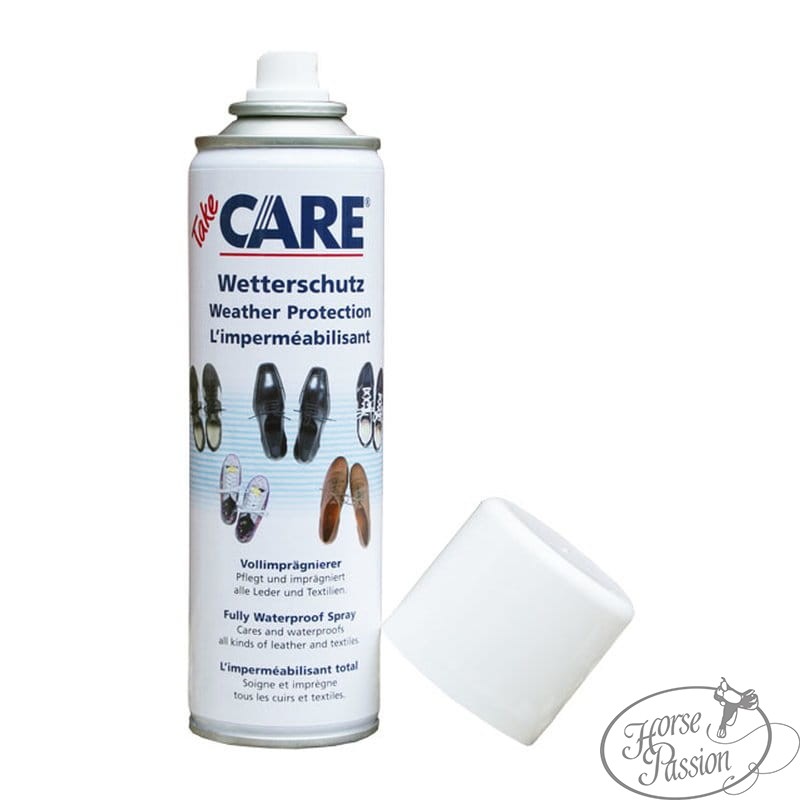 Take Care to uniwersalny impregnat w sprayu do skóry i tekstyliów, przeznaczony do ochrony sprzętu jeździeckiego, odzieży oraz obuwia przed wilgocią i zabrudzeniami. Preparat tworzy warstwę ochronną, nie wpływając negatywnie na elastyczność skóry ani oddychalność materiałów.
