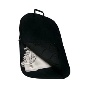 Torba na czapsy show — czarna pikowana tkanina, zamek błyskawiczny na całym obwodzie, uchwyt do noszenia. Chroni czapsy przed kurzem i zabrudzeniem podczas transportu i na zawodach.