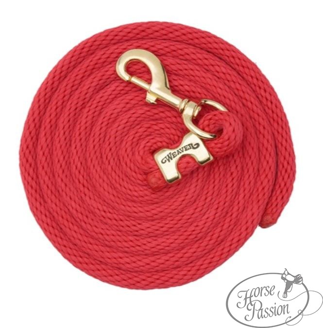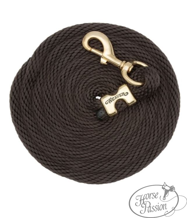 Uwiąz do prowadzenia konia Weaver — lina z wytrzymałego polipropylenu o długości 3 m (10 ft) z litego mosiężnym karabińczykiem 225. Miękki, przyjemny w dotyku splot minimalizuje ryzyko otarć dłoni, termicznie zgrzewane końce zapobiegają strzępieniu. Dostępny w szerokim wyborze kolorów. Jakość USA.