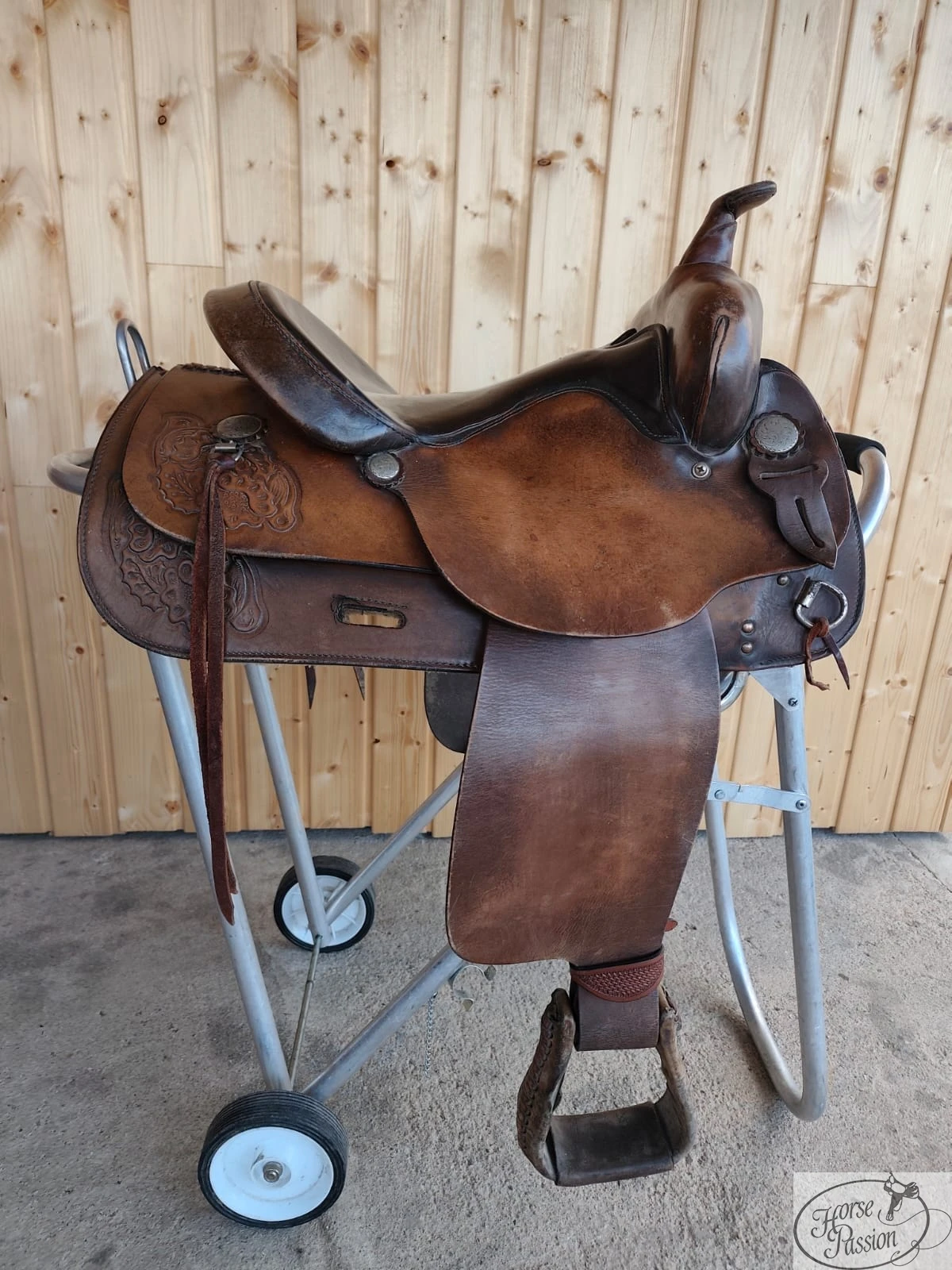 Używane siodło western Big Horn 15" floral tooling czarne siedzisko