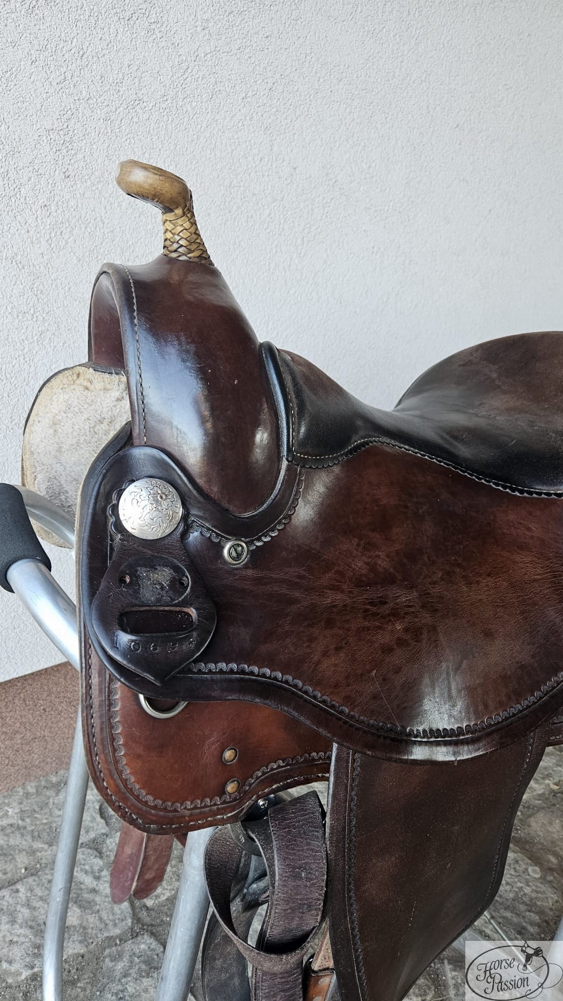 - Wyjątkowy kontrast – głęboki, ciemny kolor skóry wspaniale komponuje się z jasnym rogiem. Horn został solidnie obity surową skórą dla maksymalnej trwałości.