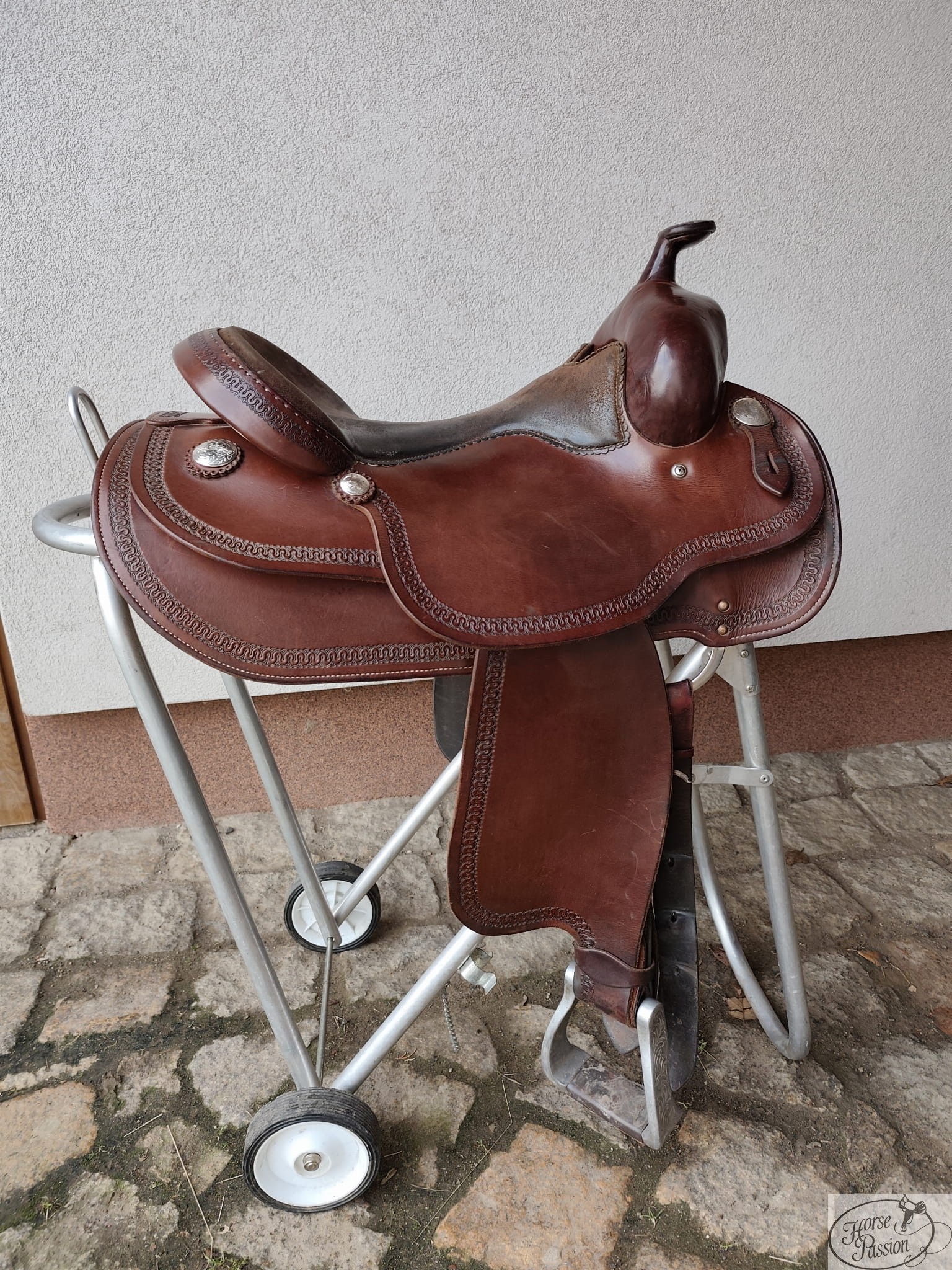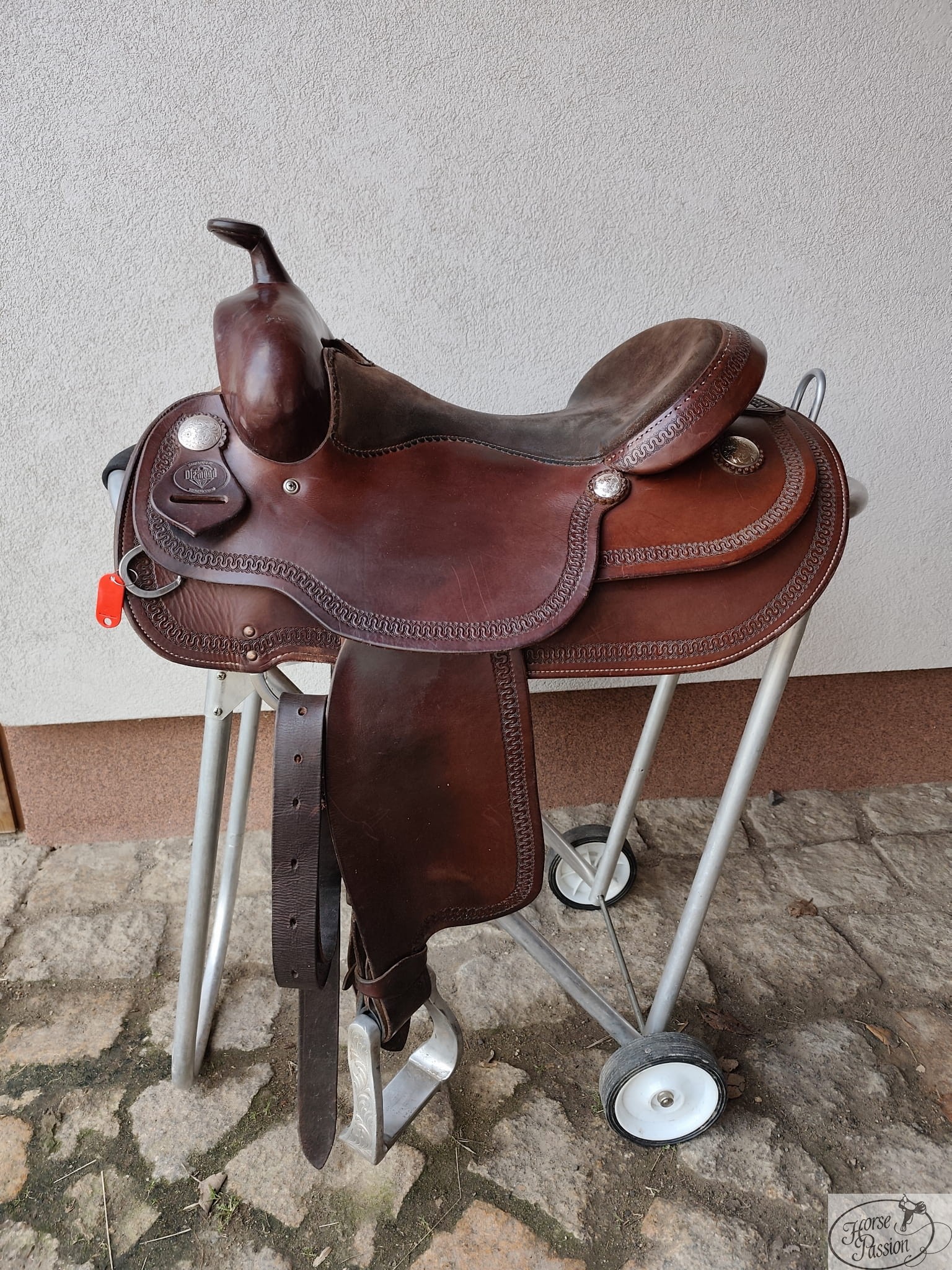 Używane siodło westernowe amerykańskiej marki Diamond C w rozmiarze 16 cali. Posiada zamszowe siedzisko i aluminiowe strzemiona floral. Sprawdź opcję darmowej przymiarki i testów na własnym koniu!