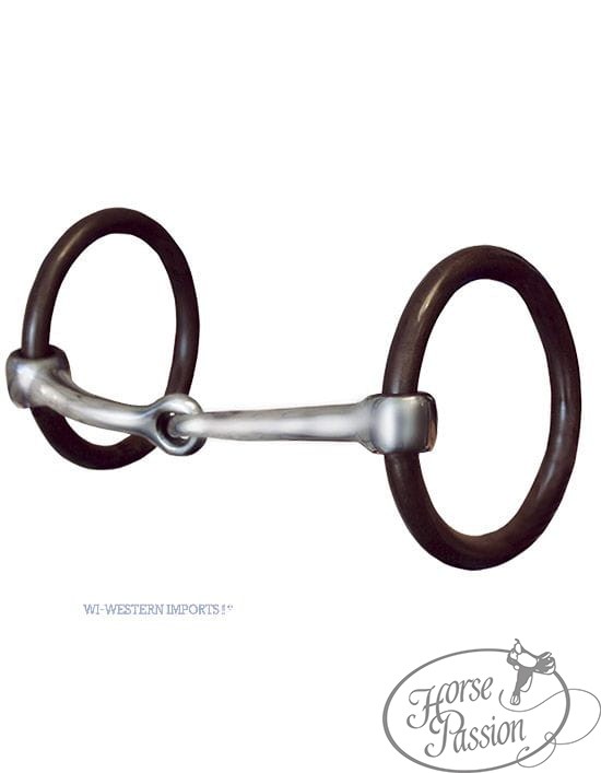 Wędzidło Snaffle Bit Promaster WI-Western Imports — ciężkie symetryczne O-ringi sweet iron z miedzianymi wstawkami na złączach, aluminiowy anatomicznie zakrzywiony ścięgierz. Rozmiar 5" (12,7 cm) lub 5,5". Połączenie ciężkich ringów (stymulują żucie u młodych koni) z lekkim aluminiowym ścięgierzem (komfort w pysku). Nie wymaga curb strapa.