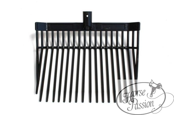 Widły z tworzywa zostały zaprojektowane z myślą o pracy w boksach wyścielonych trocinami. Gęsty układ zębów umożliwia dokładne przetrząsanie ściółki, co ułatwia oddzielenie obornika od czystych trocin.