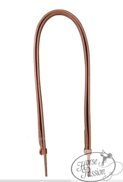 Wodze ropingowe Western Imports to zamknięte wodze skórzane (closed reins) — w odróżnieniu od split reins stanowią jedną ciągłą pętlę, a nie dwie osobne wodze. Regulacja za pomocą sprzączki lub węzła pozwala dostosować długość w zakresie od ok. 183 cm do ok. 340 cm, co jest kluczową cechą przy pracy z bydłem i w roping — jeździec może błyskawicznie wydłużyć lub skrócić wodze bez zdejmowania ich z wędzidła. Mocowanie na loops (pętelki skórzane) zamiast metalowych zapinek to standard w wodzach roboczych — loops nie brudzą pyska konia metalem i są tańsze w naprawie.