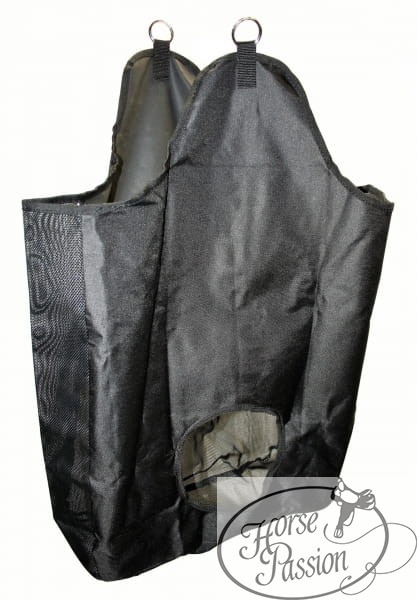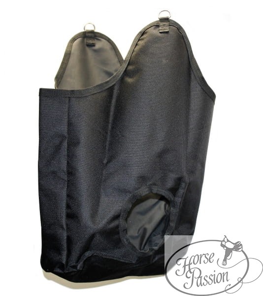 Czarny worek na siano wykonany z nylonu przeznaczony jest do codziennego użytkowania w stajni, na padoku oraz podczas transportu koni. Forma worka typu „jak siatka” pozwala na podawanie siana w sposób uporządkowany i kontrolowany.